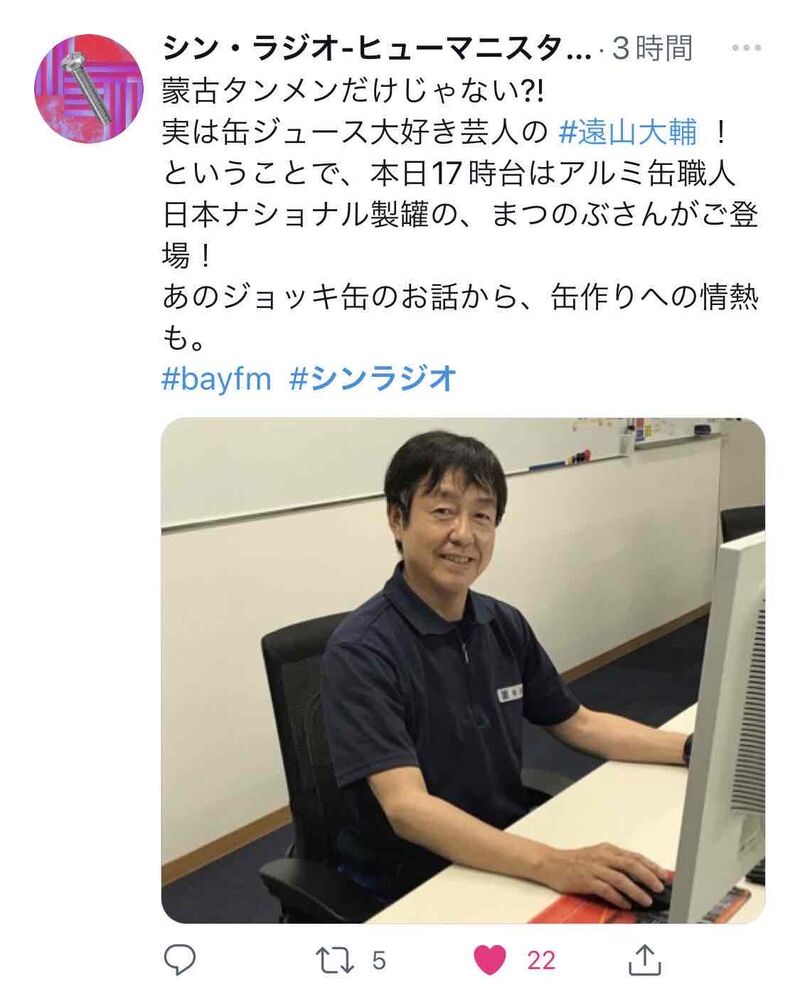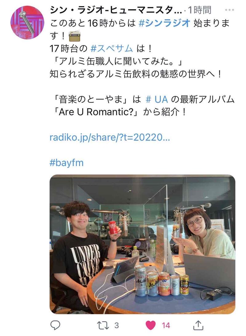 千葉のFMラジオ局「bayfm」様より、「缶」製造の裏側を含めた話しを“アルミ缶職人”にお伺いしたい!とのオファーから実現しました。